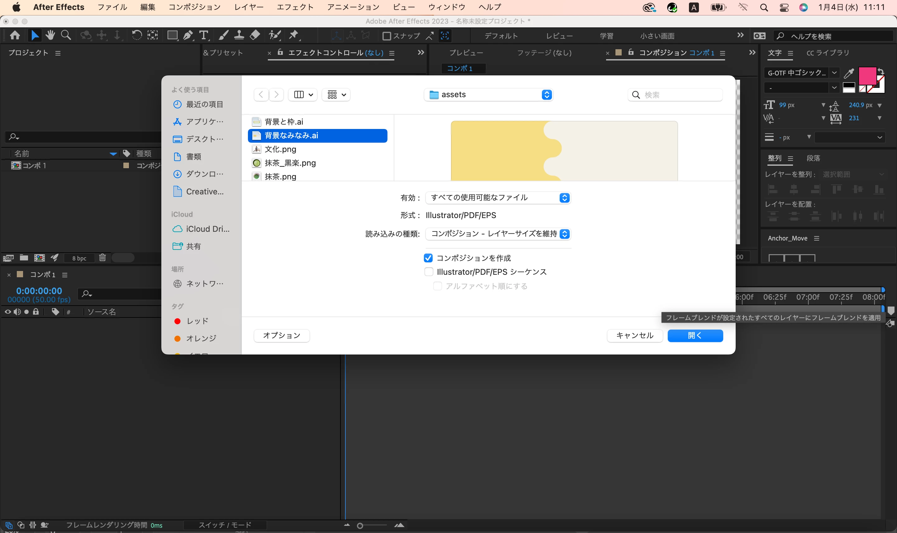 順順子2686513197htParticipantForum|Forum|3 years agoJanuary 4, 2023Questionイラレデータを読み込むと、イラレのアートボード外の素材が表示できませんForum|Forum|3 years agoJanuary 4, 20232 replies2956 viewsイラレのデータをAEに読み込むと、イラレのアートボードからはみ出た部分の素材が表示できません。どうしたら表示できますか? 昨日まで、同じ工程で、表示できていたのですが、途中から急にできなくなってしまいました。 Adobeのソフト(イラレ、AE、プレミアなど)は、全て最新にアップデートしています。MacBook Pro OS バージョン12.5です。 よろしくお願いします。読み込みと書き出し