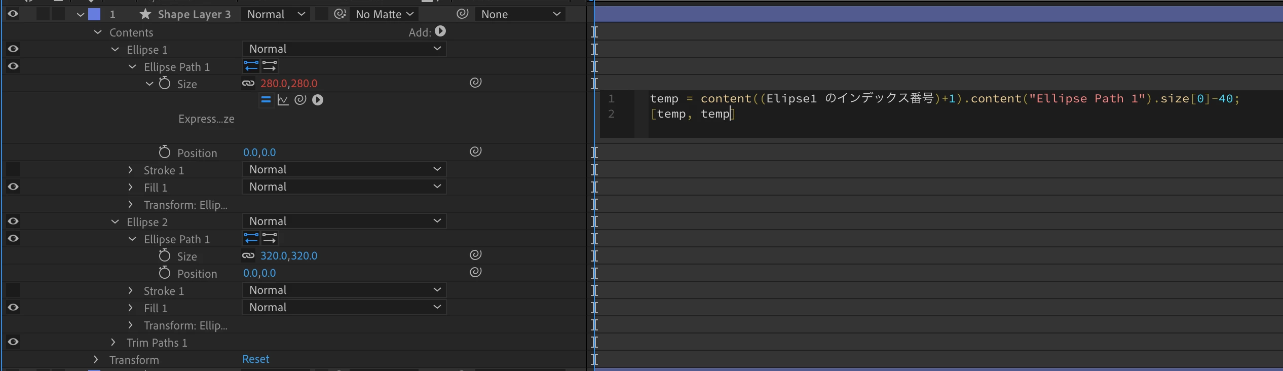 Elipse1のインデックス番号(1になると思います)を取得してElipse2(2)のサイズより40小さい円を作ります。