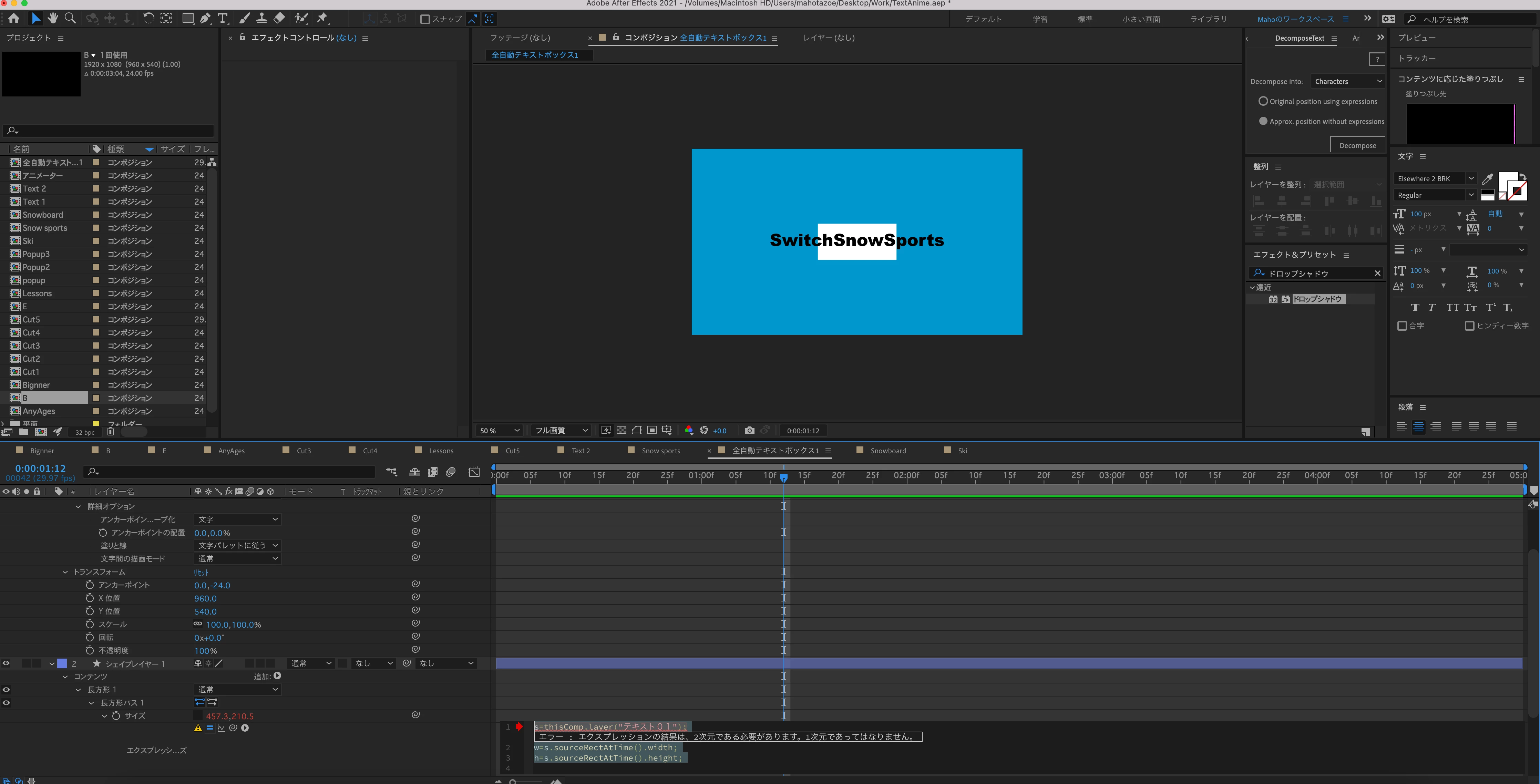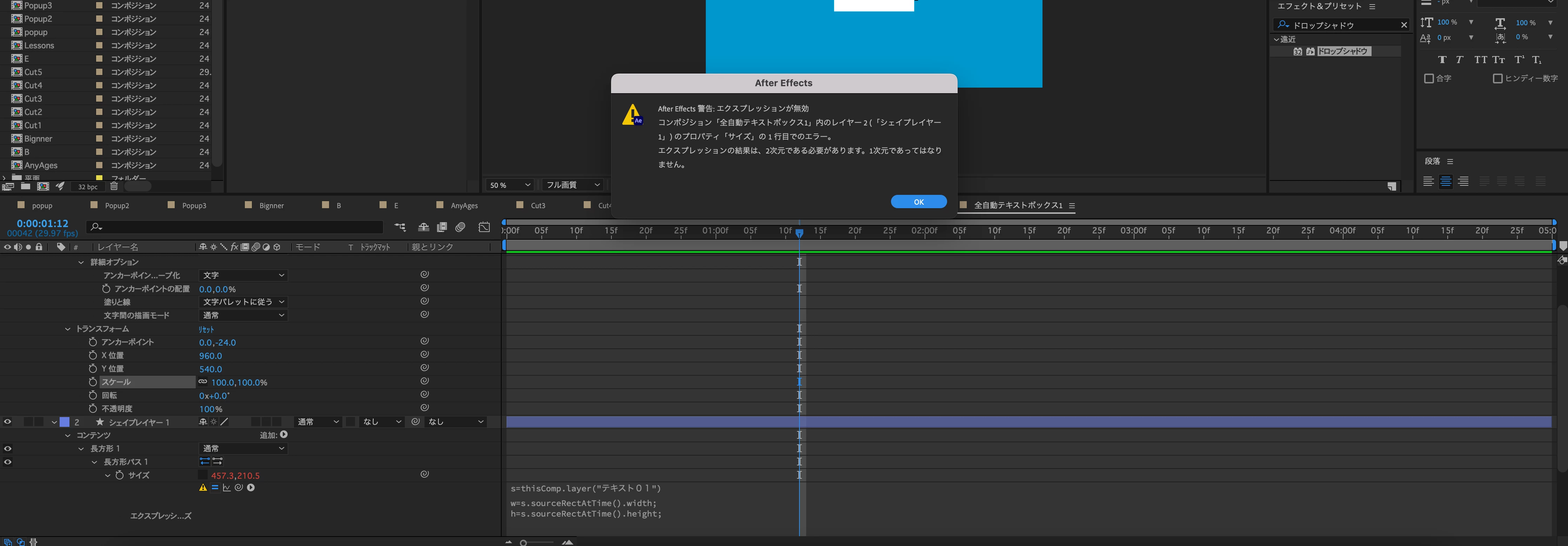 ダストマンさんのチュートリアルに沿って作成し、エクスプレッションにコピペしたらエラーが出てしまいました。解決方法や原因がわかりますでしょうか?エラーのスクリーンショットも添付しておきます。