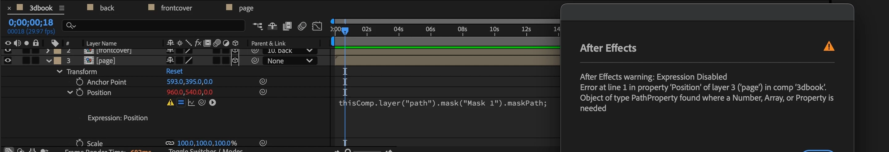 エクスプレッションのエラーについて