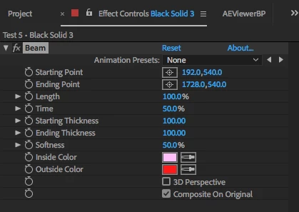 エフェクト-描画-レーザーを使用したいのですが、再生ウィンドウ上だと途切れて表示されてしまいます。マスクなどで範囲を指定しているわけではないですが、レーザーが表示されません。