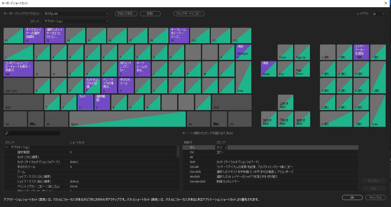 カットのショートカットについて