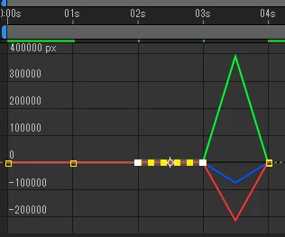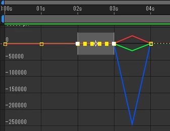 自動ベジェでウィグラーを適用したとき(従前の設定のまま)の目標点のグラフエディターの画像を添付いたします。