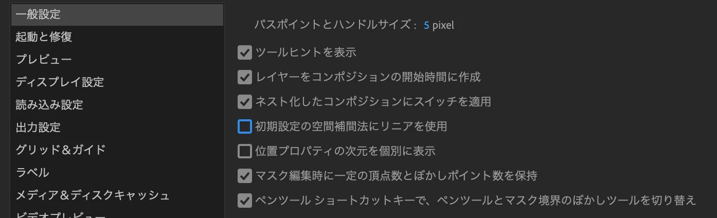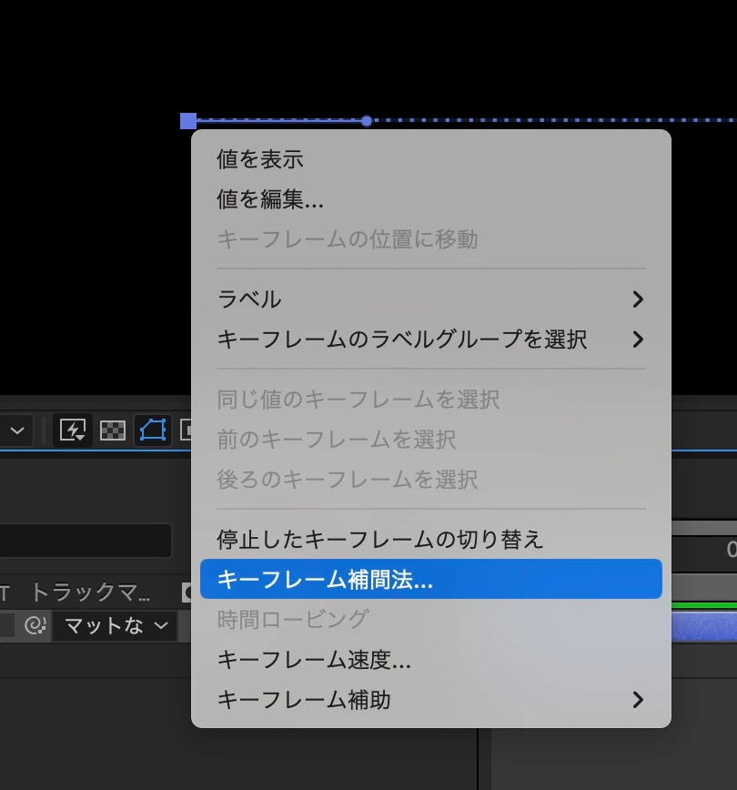画像のようにレイヤーパネルのキーフレームを両方選択しましたが、コンポジションパネルにてハンドルが表示されません