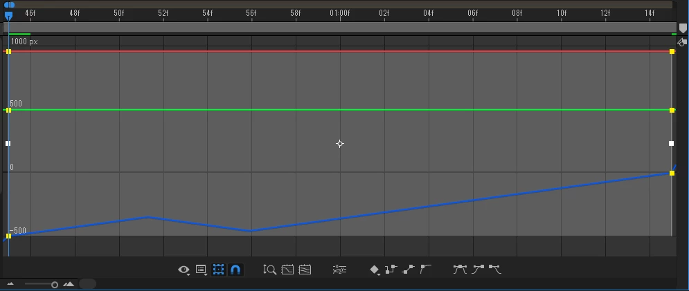下の画像のようにキーフレームを置いていない箇所に謎の折れがあり、