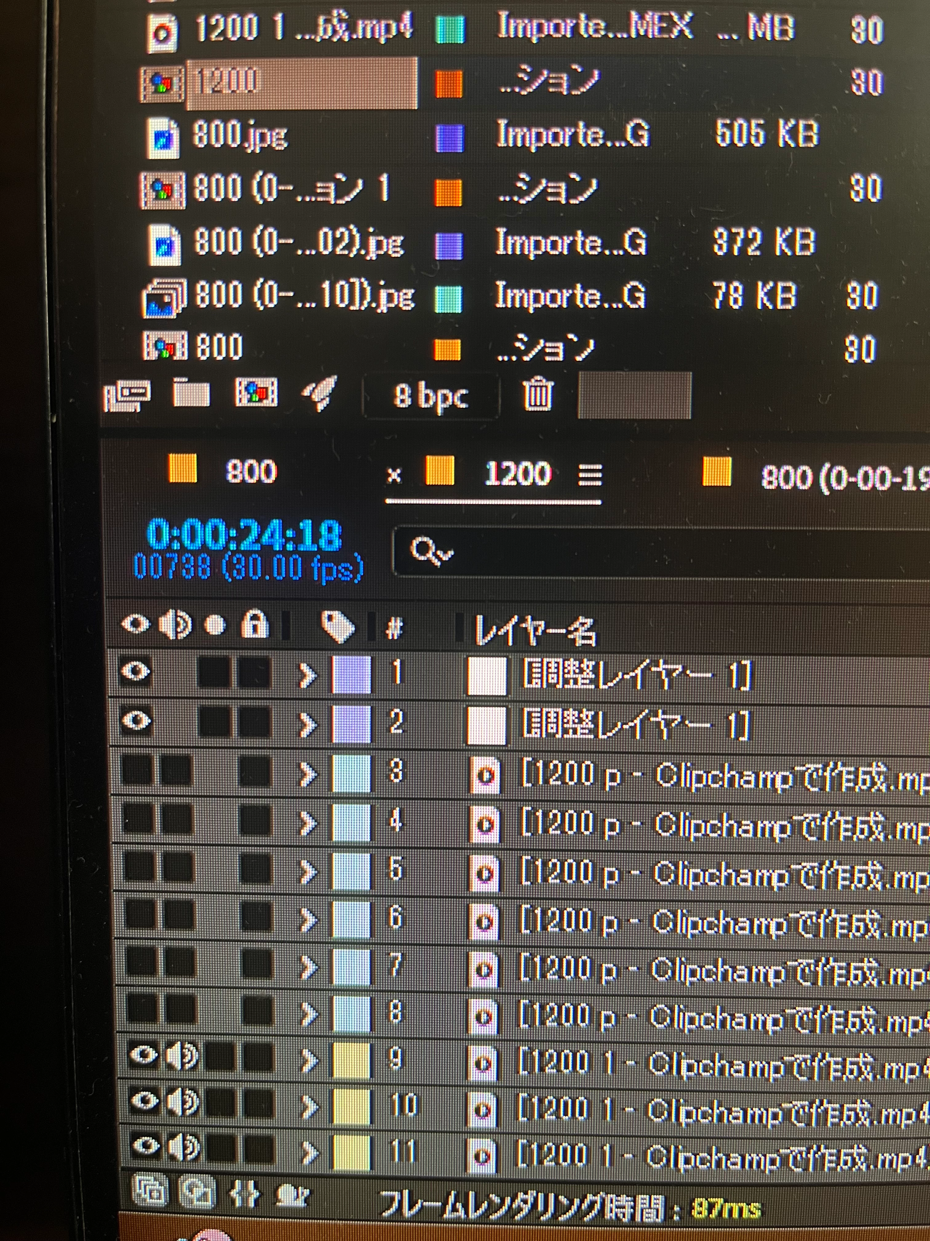 下記のように同じプロジェクト内にコンポジションを作ったのですが、後でこの1200のコンポジションは新規プロジェクトとして作るべきと判明致しました。