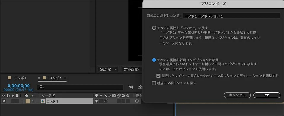 コンポジション内に「プリコンポジションを配置」して、