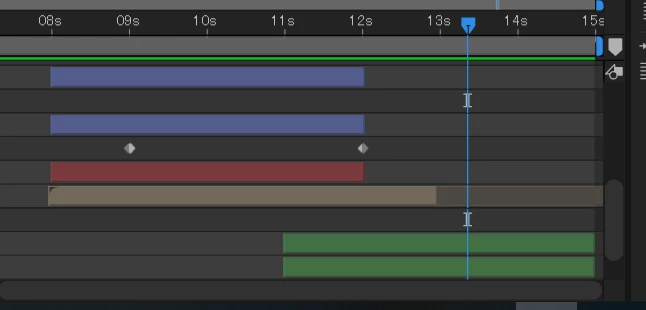 下図はタイムラインパネルです。2つのレイヤー(イラレファイル)しか配置されていませんが、