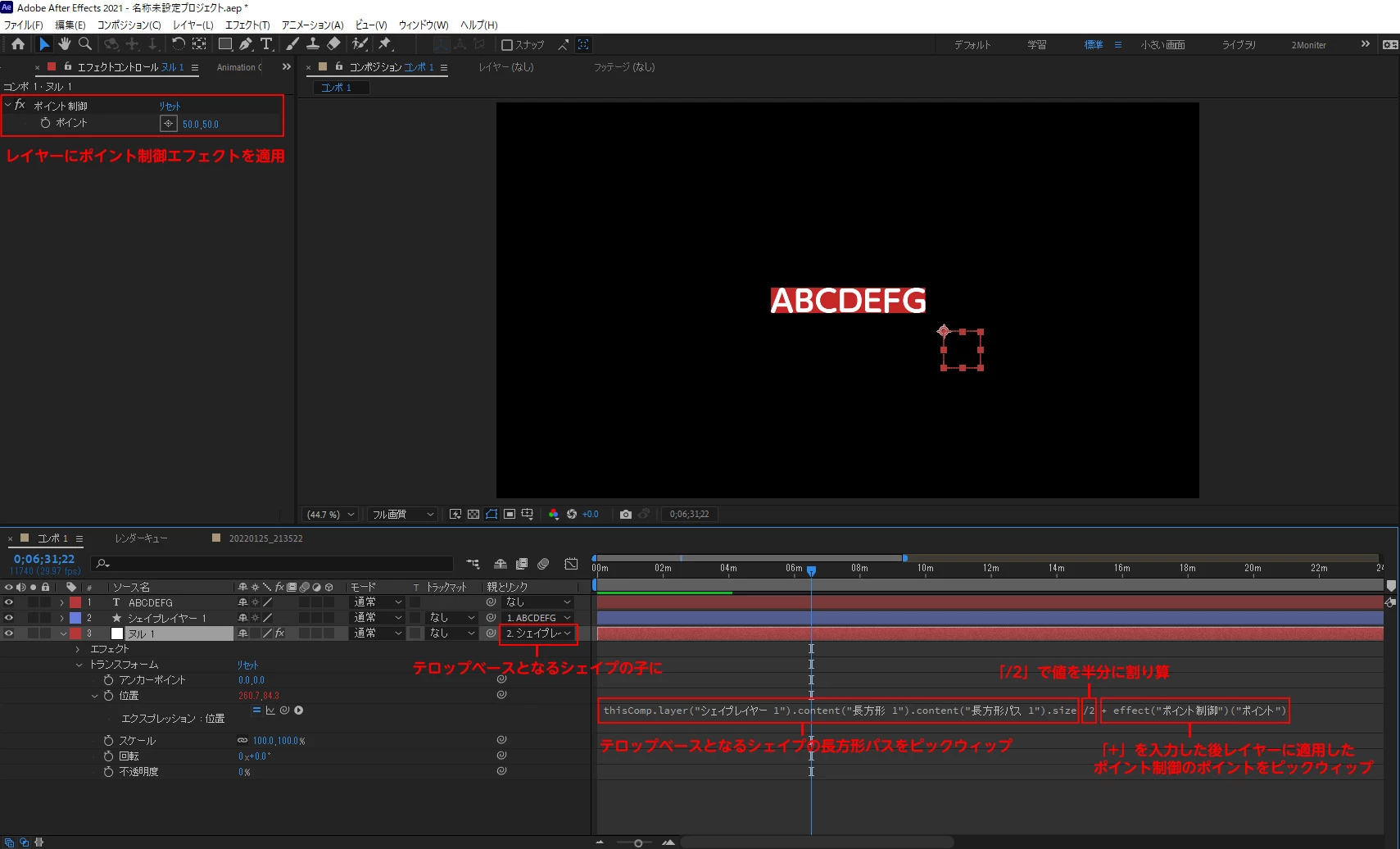 このシェイプの右端に、追従する透過画像を表示させておきたいのですが、どのようなエクスプレッションを入れればよいのでしょうか?