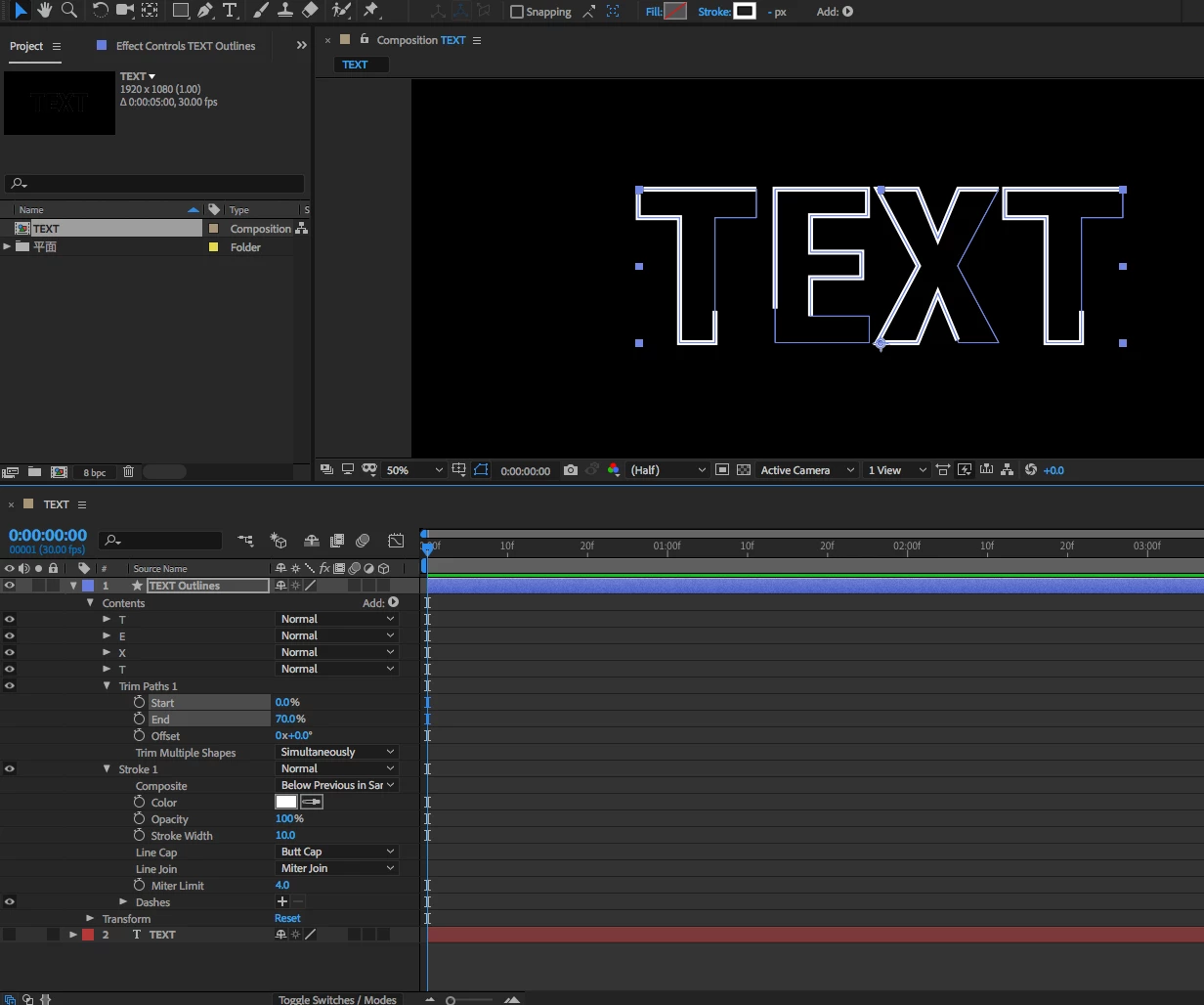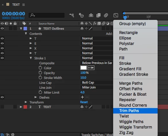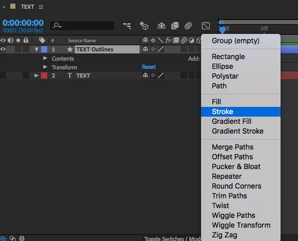アウトラインが少しずつ描かれていくテキストアニメーションを作りたいのですが、シェイプレイヤーにテキストを加えるにはどうすれば良いですか?