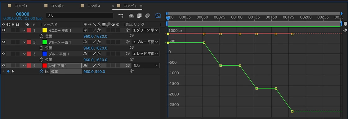 コンポジションの設定が1920 x 1080の場合は、位置を下から順番に1080づつ加算します。