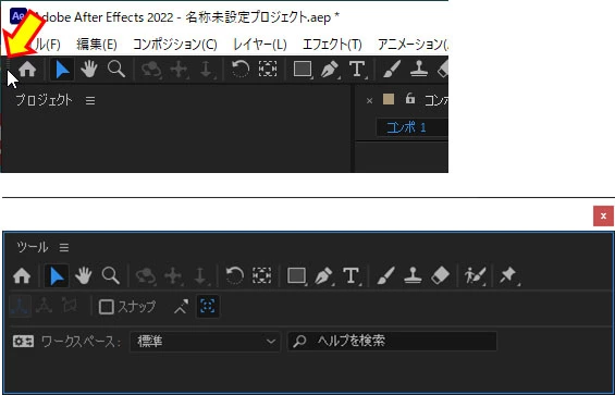 AEはAdobe Premiere Proととても似ているのですが、いざ触っていくとところところ操作方法が違うのでまだまだ勉強中です。でも今回のようなツールバーの移動などはAdobe Premiere Proと一緒だったので私の理解力が乏しいのも影響していますね、がっかりです。