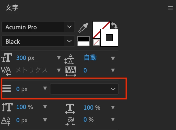 普通に作るとすれば、テキストパネルにある「塗り」のチェックボックスを外し、ストロークにチェックを入れる。