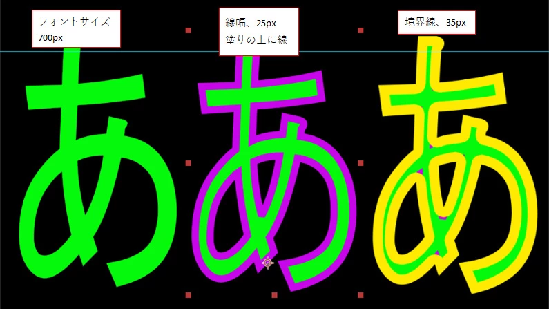 しかし、この方法だと、ストロークの太さ分、元のテキストよりも大きく(太く)なりますよね。