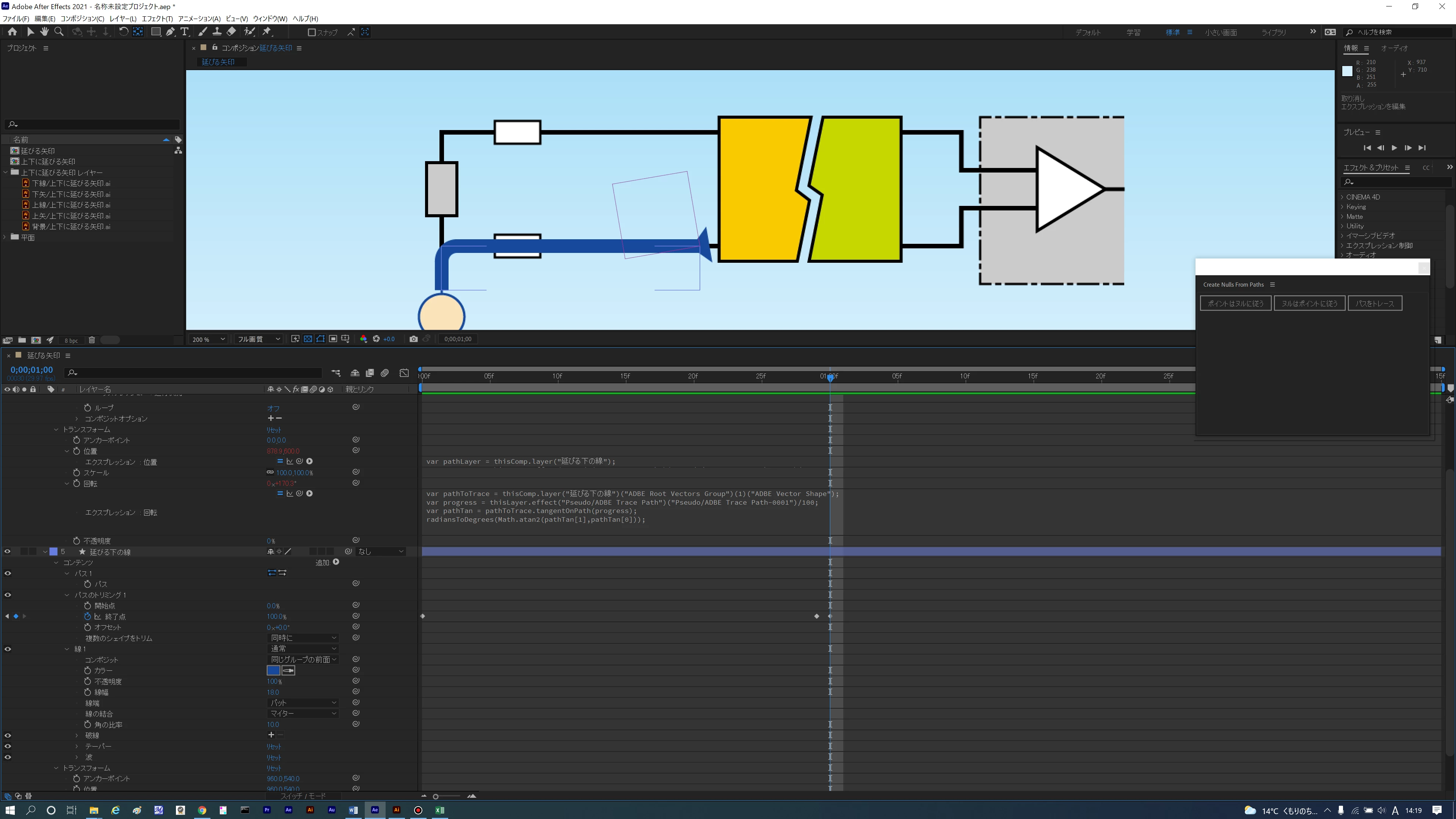 シェイプレイヤーのパスからCreate Nulls From Pathsのパスをトレースを使用して