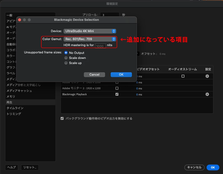 プロジェクト設定のガンマ値をRec709からsRGBに変えたら