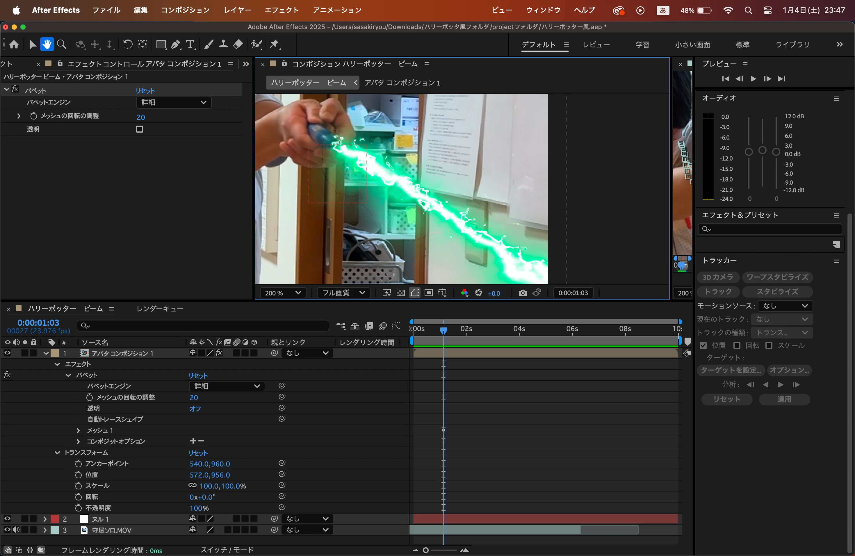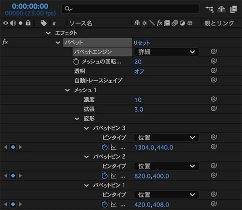 youtubeの動画を参考に動画制作しておりました。動画ではパペットピンを使用しトラックしたところ??に刺したらヌルレイヤーに繋げるみたいな工程についてなのですが動画の方のようにパペットピン1~3というものが自分のパネルには見当たらず出しかたも分かりませんでした。ご教示頂きたいです。動画は5分40秒あたりです。画像は自分の編集画面になります。https://youtu.be/Gb1RxXza5Ew?si=Tea2y6PwqmhqzXWe