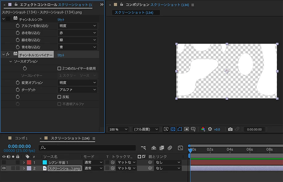 エフェクトを使う場合は、チャンネルシフトやチャンネルコンバイナーなど