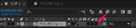 プリコンポーズ後の画面の表示について