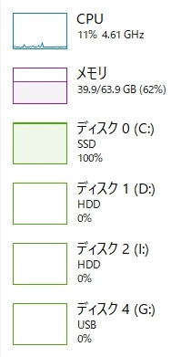aftereffectで作業中にプレビューのキャッシュをためるとCドライブの使用率が100%になり、PC自体の動作が重くなってしまいます。