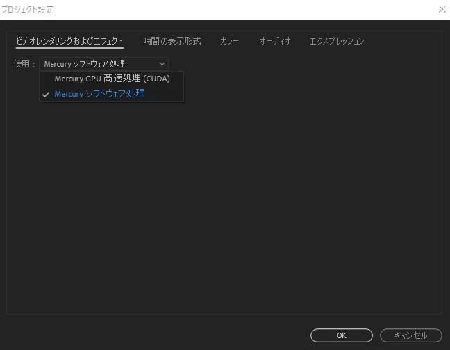 プロジェクトを開いた際、デフォルトでビデオレンダリングおよびエフェクトの設定がMercuryソフトウェア処理になっているのですが、こちらも一般的でしょうか?