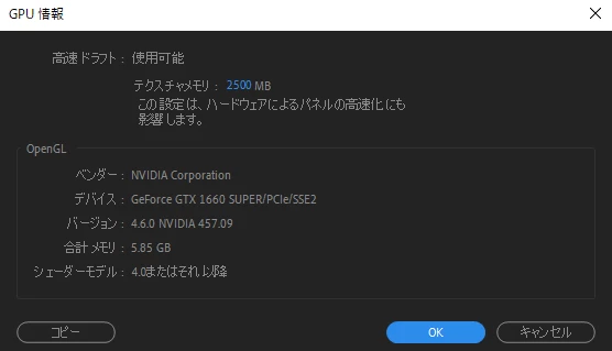 プレビュー再生が以前より急に重くなった気がするのですが、こちらの設定でGeForce GTX 1660 SUPERのGPUは問題なく使用されていますでしょうか?