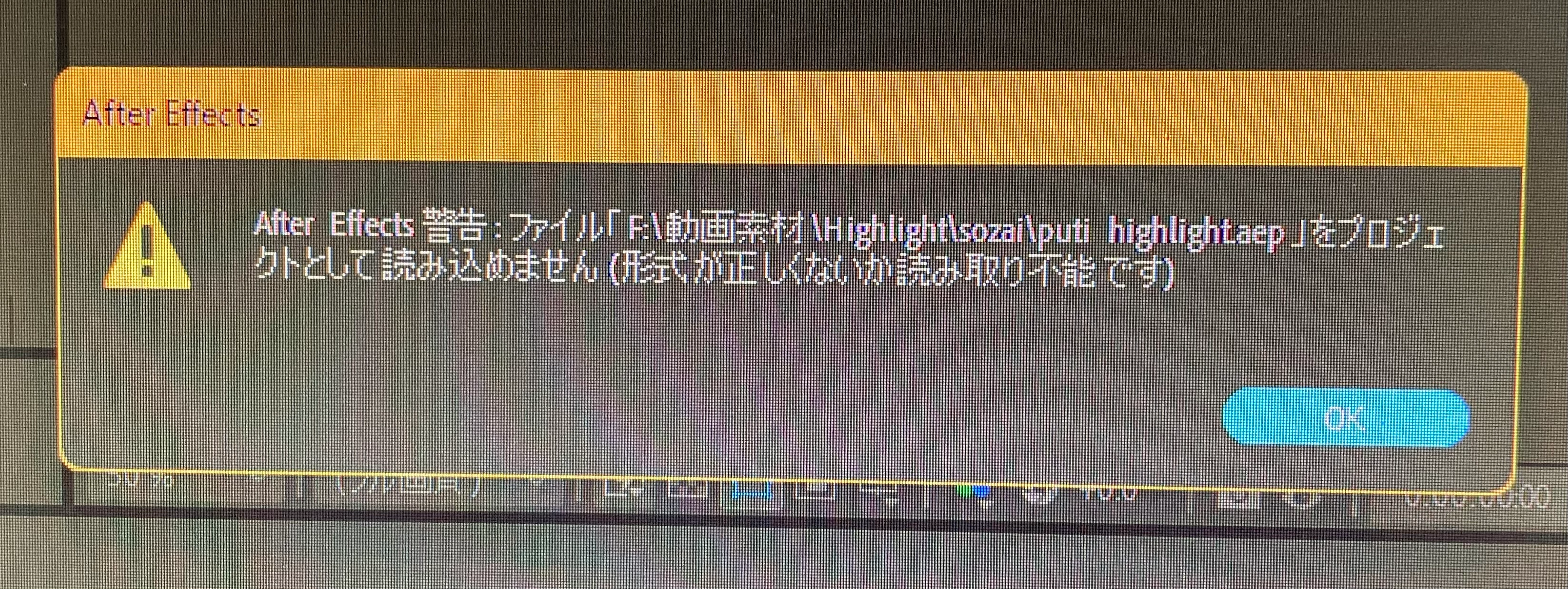 ゆゆきまる水産ParticipantForum|Forum|4 years agoDecember 27, 2021Questionプロジェクトが開けないForum|Forum|4 years agoDecember 27, 20213 replies3367 viewsプロジェクトが「ファイル「(ファイルの保存場所)/(ファイル名)」をプロジェクトとして読み込めません(形式が正しくないか読み取り不能です)」という警告が出てきてしまいました。OKを押しても古いバージョンから新しいバージョンに変換されているということもなく、データは全く何もありません。これは対処のしようがないのでしょうか?別のプロジェクトは問題なく開くことができました。バージョン22.11ですエラーまたは問題読み込みと書き出し