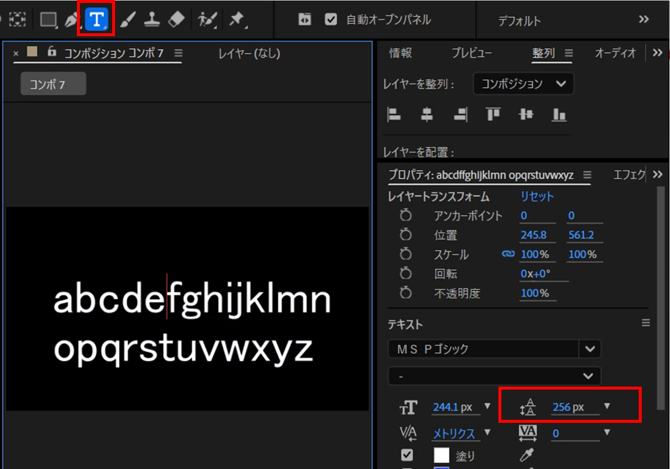 モーショングラフィックステンプレートでテキストの行間設定をしたい
