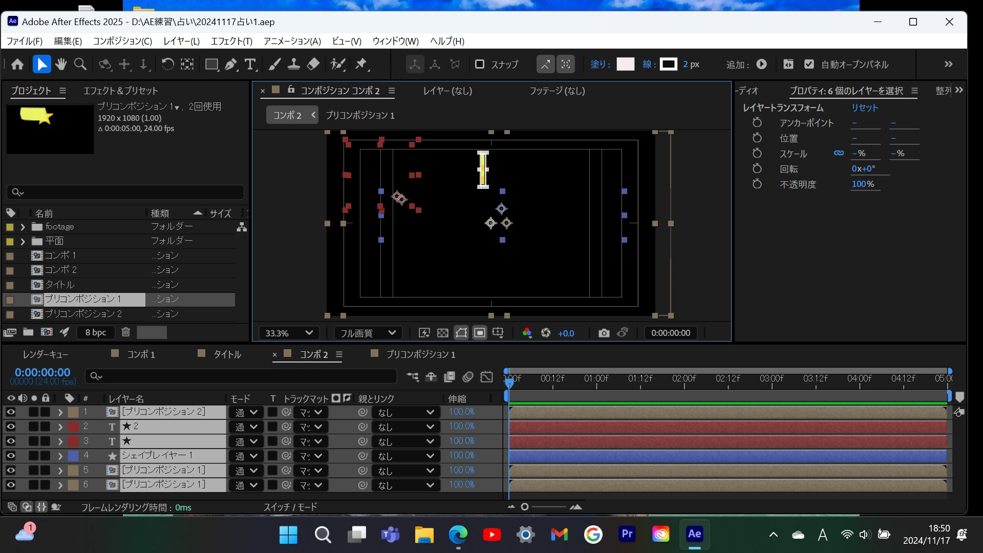 お世話になります。現在、After Effectsの2025版を使用しています。(使用し始めて1ヶ月ほどです)レイヤーを移動しようとしても移動が出来ません。(選択ツールを選んだ状態でレイヤーを選択してマウスで移動しようとするとレイヤーのパスだけの表示になってしまいます)また、複数のレイヤーを移動しようとしても移動が出来ません。対応策があれば教えていただきたくメールいたします。宜しくお願い致します。