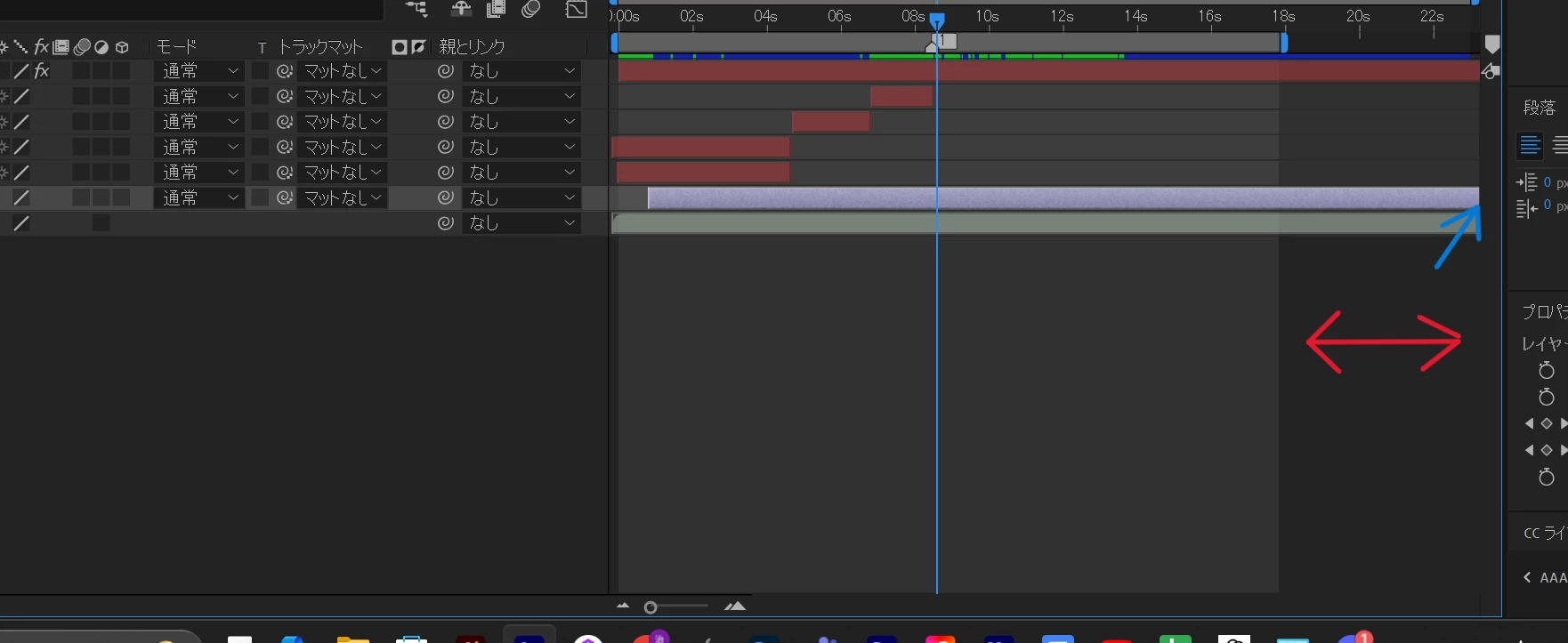 レイヤーを短くしたいのですが画像のように初期の段階では青矢印の右端にカーソルを合わせても