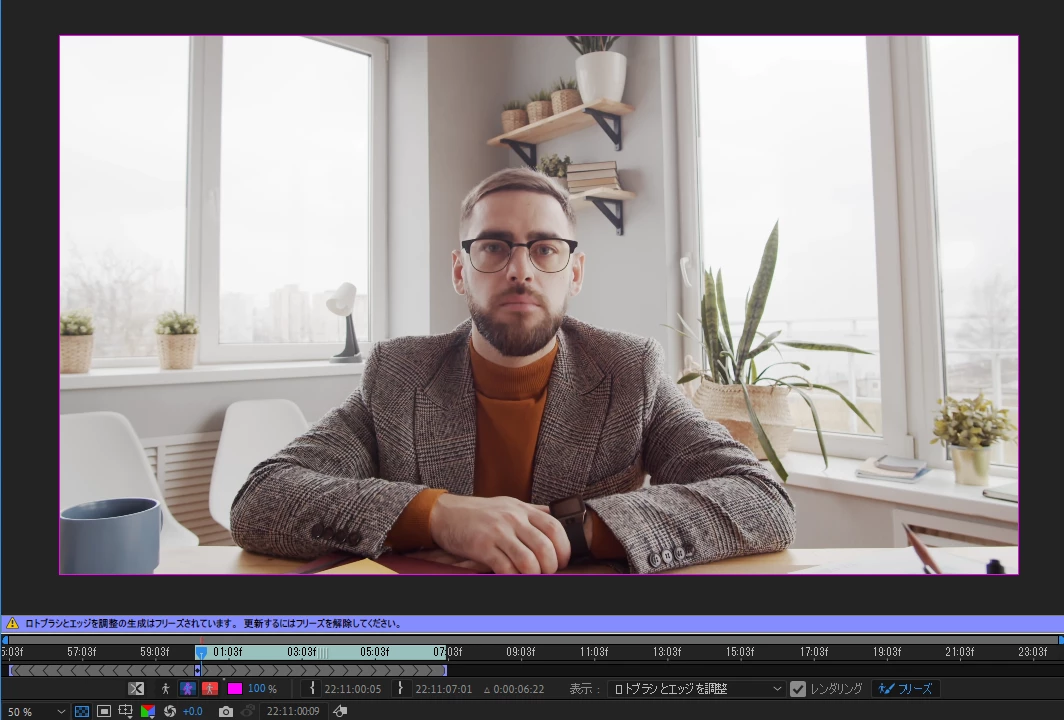 1.まず新規プロジェクトに同じ動画を取り込みサッと適当にロトブラシをかけると正常に動作しました。ですがその後、新規プロジェクトであっても時間をかけて調整をした後にフリーズをかけると再度同じ状態が発生しました。