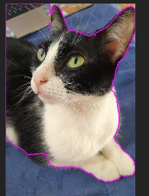 こちらの猫をロトブラシ2で猫だけを囲み綺麗に線で囲みたいのですができなくて困っています。もうかれこれ数時間はやってみたのですが悪戦苦闘中です。