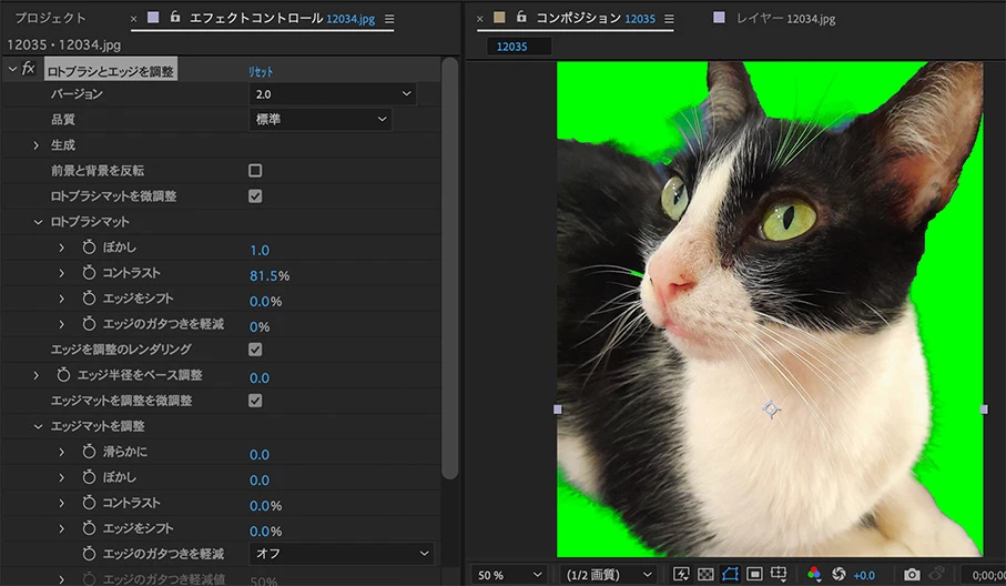 背中あたりは黒い毛と背景が被っていたりで指定しにくそうだなぁと、、、