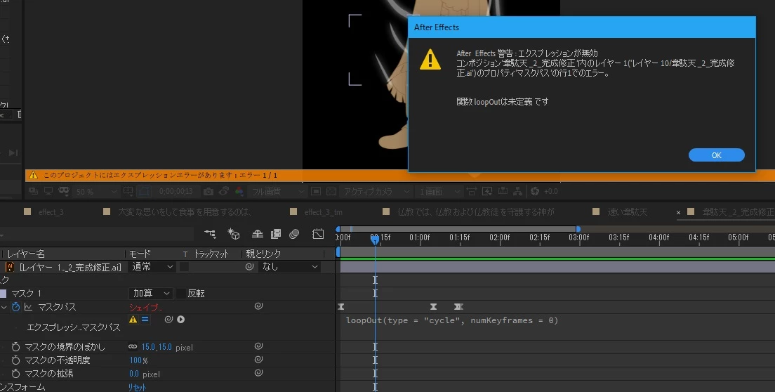 (仕様?)マスクパスのキーフレームをループさせたい【CC2019】