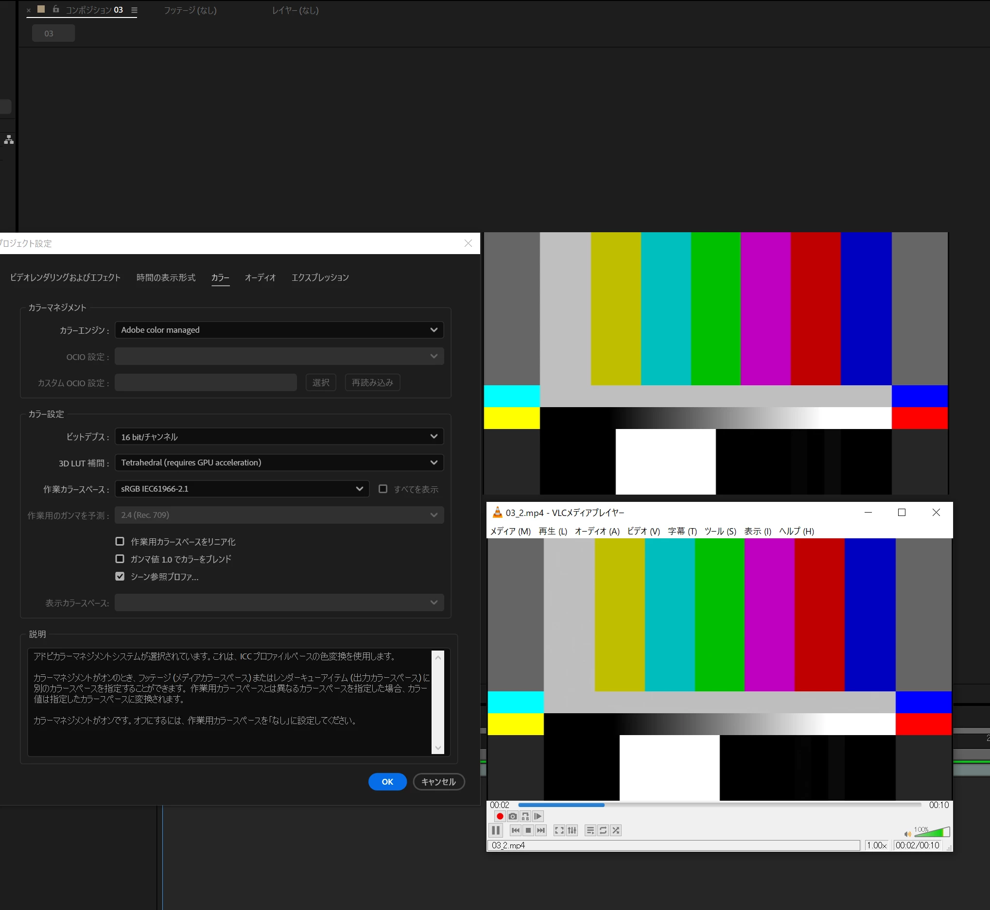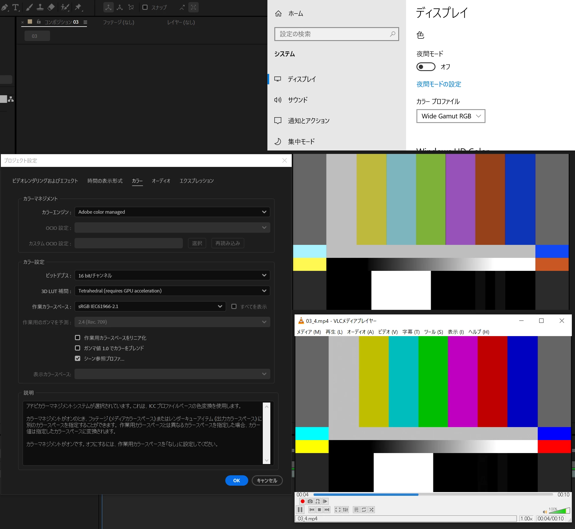 ・ChromeやVLCなど、色管理対応のプレイヤーで再生して確認