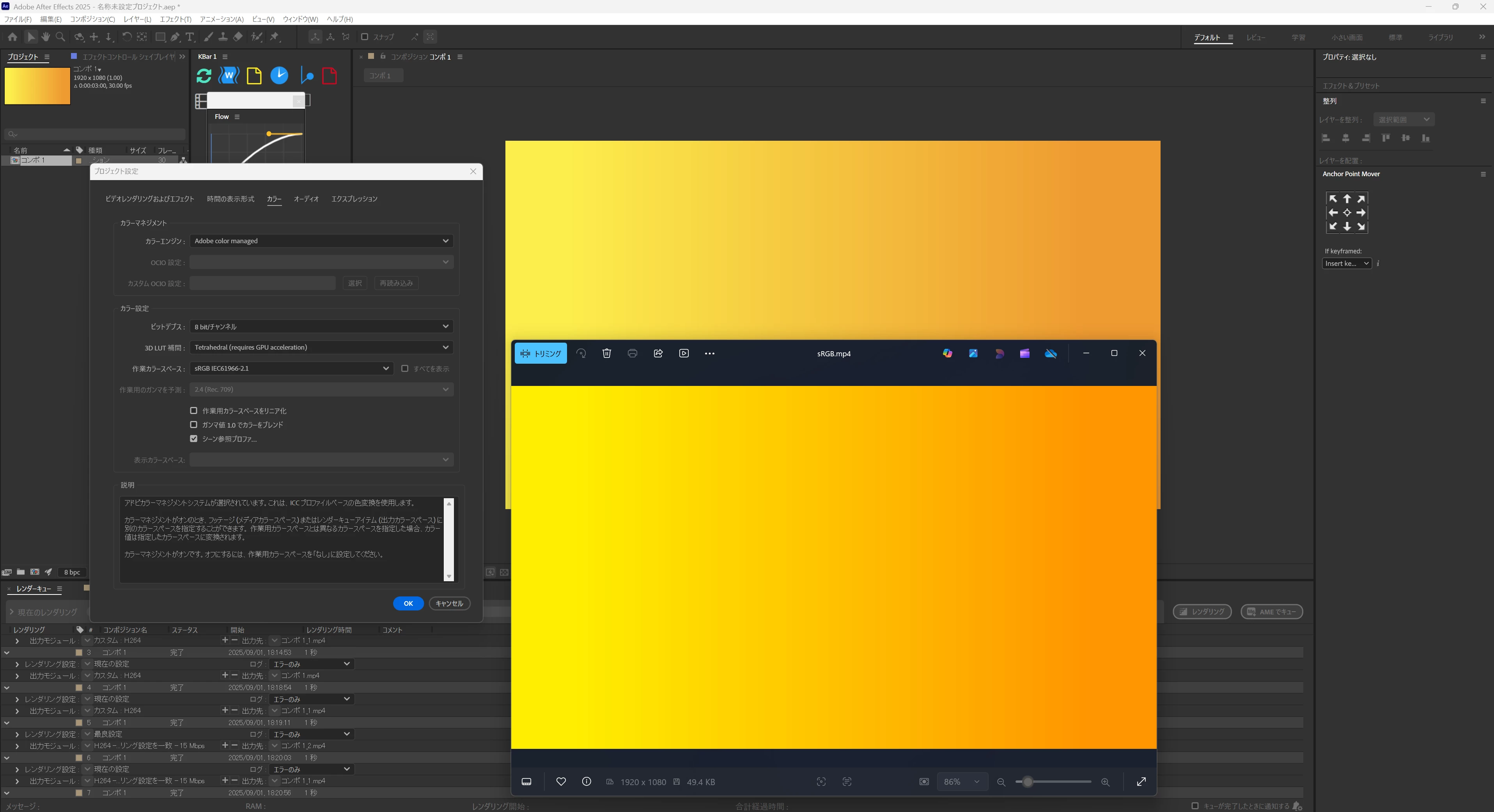 After Effectsで映像を出力する際に、プレビューよりも色が濃く出力されてしまい困っています。