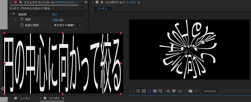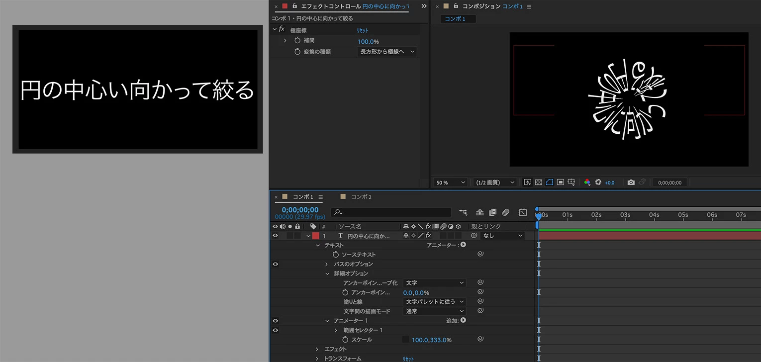 円形に並べた文字が円の中心に向かって小さくなるような変形の方法について