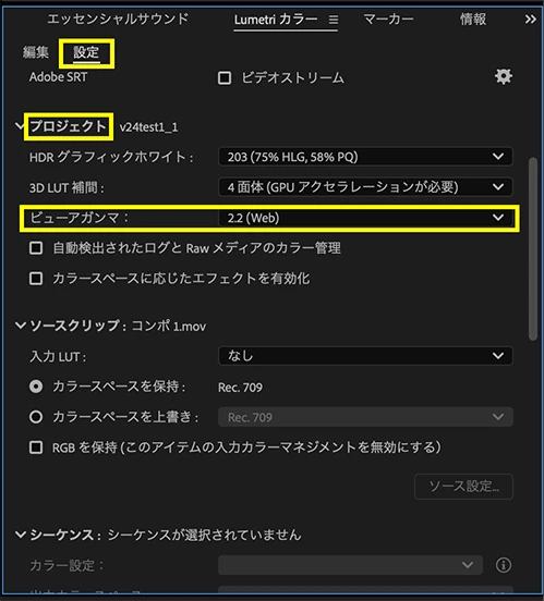 尚、あらかじめ色を調整しているだけで、書き出しはガンマ2.4に変わりはありません。
