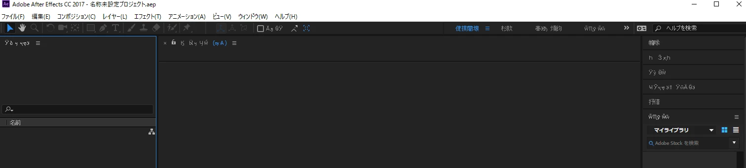 アフターエフェクトがメニューなど文字化けしてしまいました。