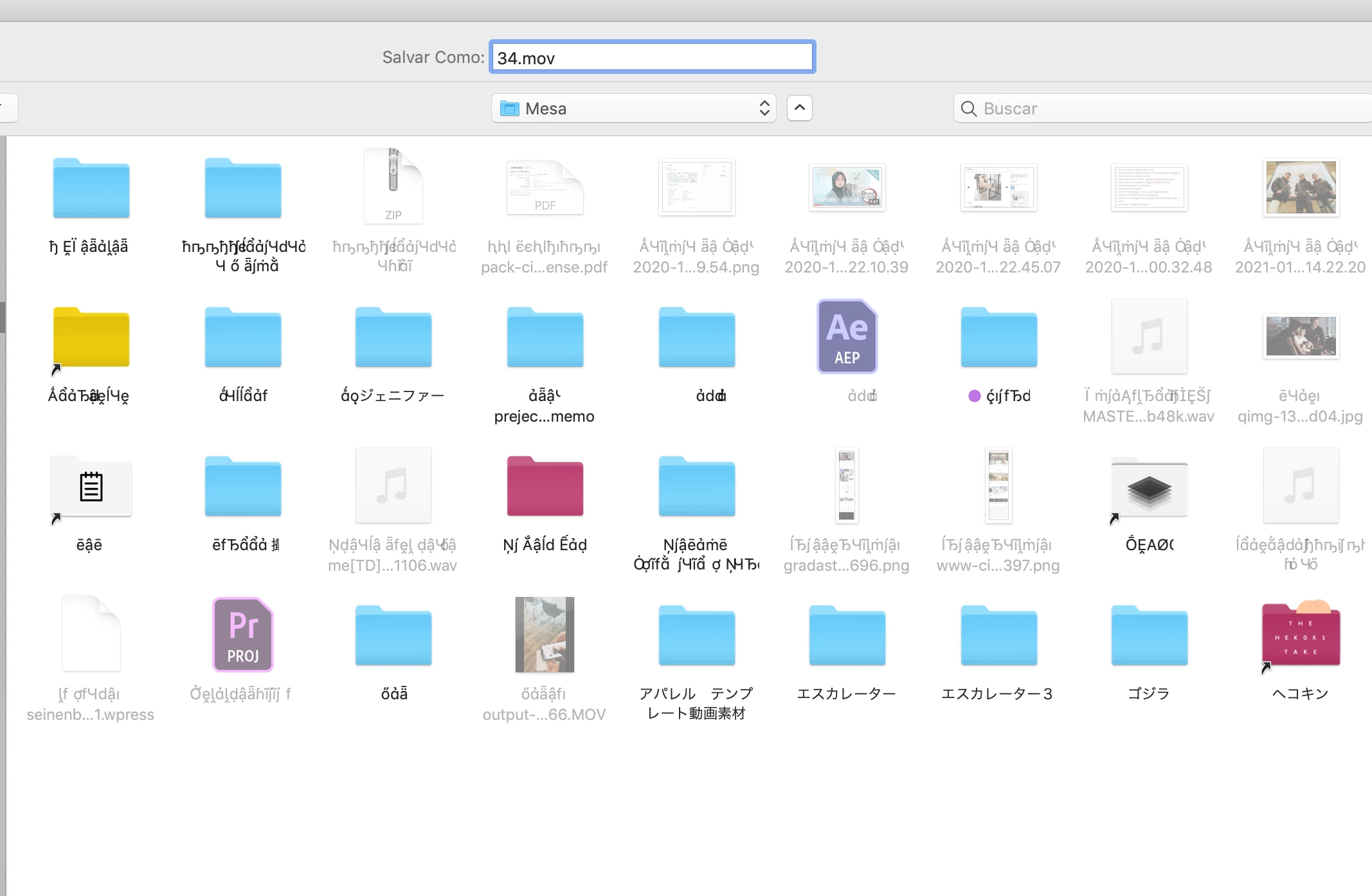 書き出しするフォルダーを選ぶ時に文字がバグる
