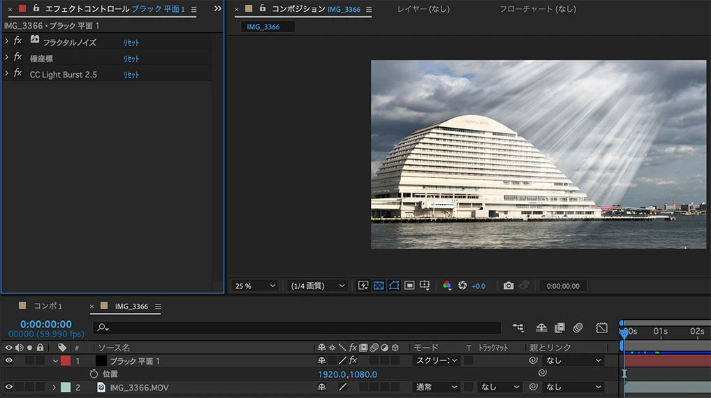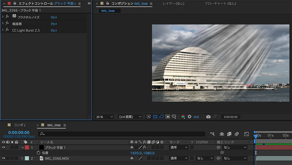 1920x1080のフラクタルノイズアニメーションを作成。