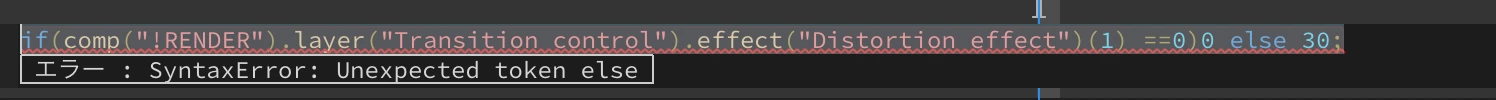 エラーの出ているエクスプレッションを試したところ、記述方法がjavascriptに対応していないので、