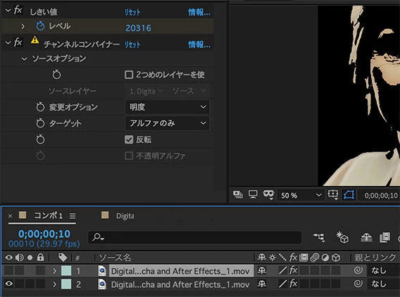 この動画の開始15~17秒にある、男の人が油絵のような状態から通常に戻るような表現をする方法を教えていただきたいです。