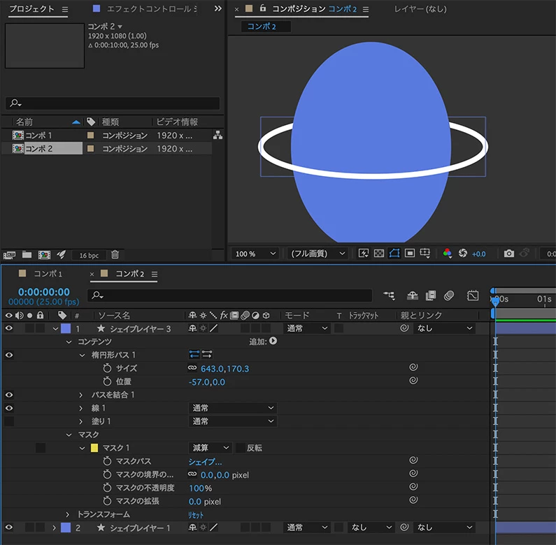 上記の様な表現がしたいのですが、コンポジション内の波紋(Ripple)レイヤーを確認すると、