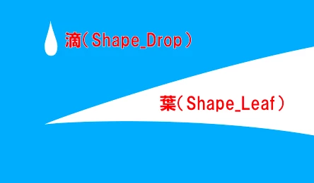 ①ペンツールを使ってシェイプレイヤーに「滴」と「葉」を描いて