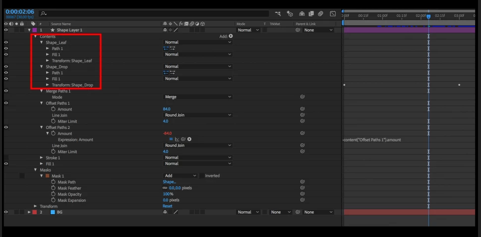 【シェイプレイヤーで「パスの結合」と「パスのオフセット」を使います】