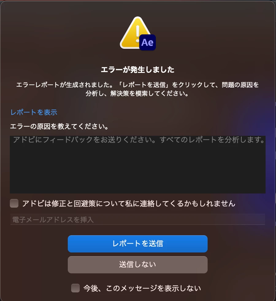 社内の特定ユーザーで、特定のaepファイルのみエラーとなり開けない問題が発生しております。