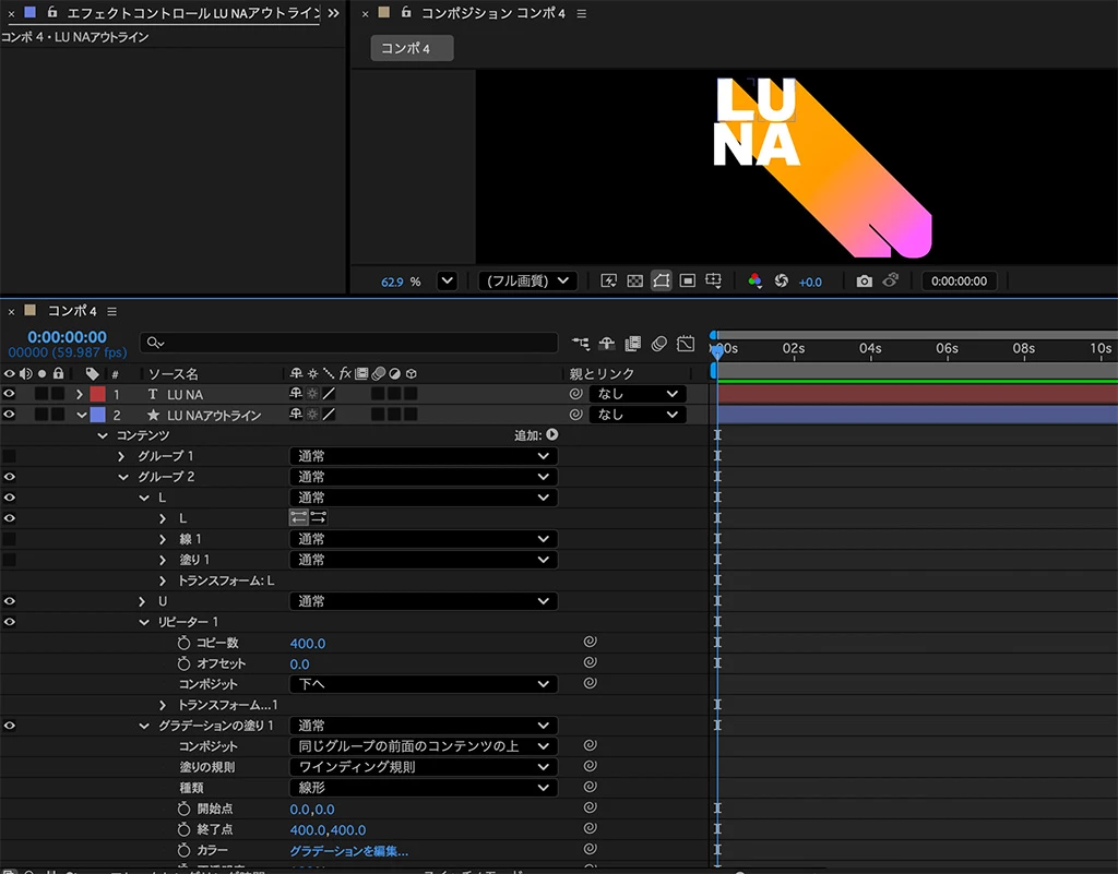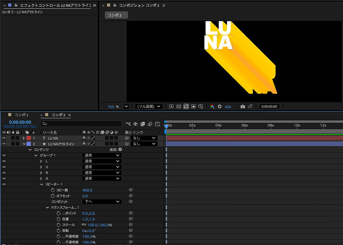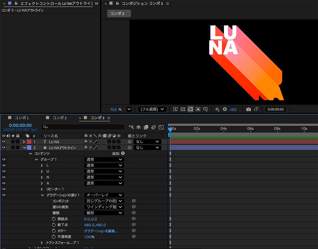 この画像のように立体的なテキストを作りたいのですが、どうも平面にしかならず、真ん中にある3Dを表す線のようなものが作れません。どなたか教えて下さると助かります!
