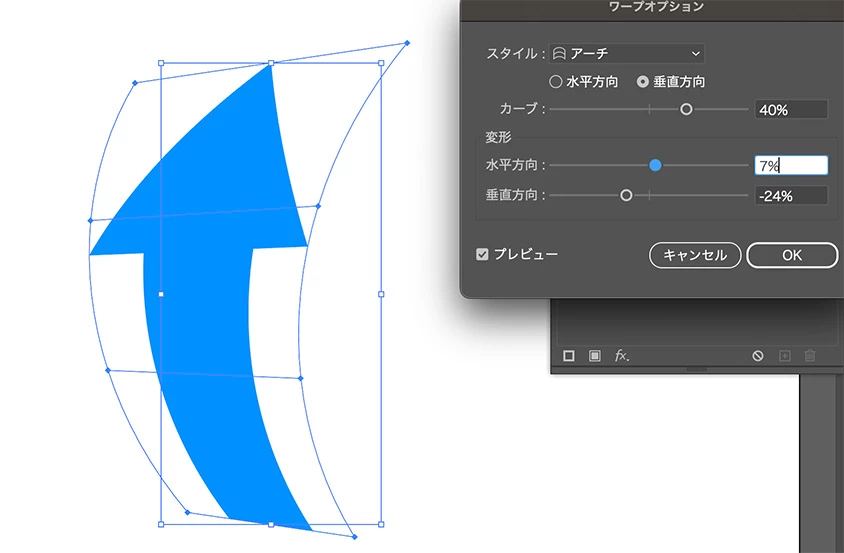 変形は、「テーパー」やIllustratorの変形機能が利用できます。