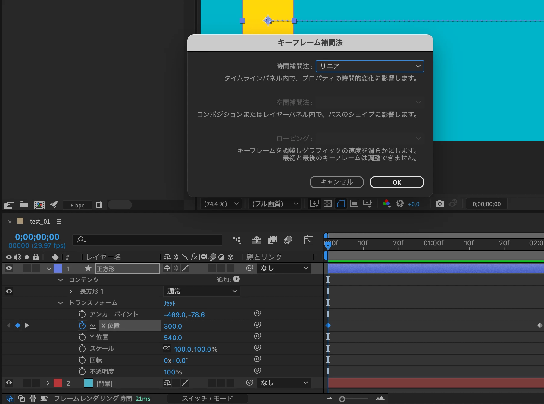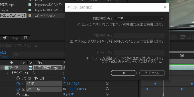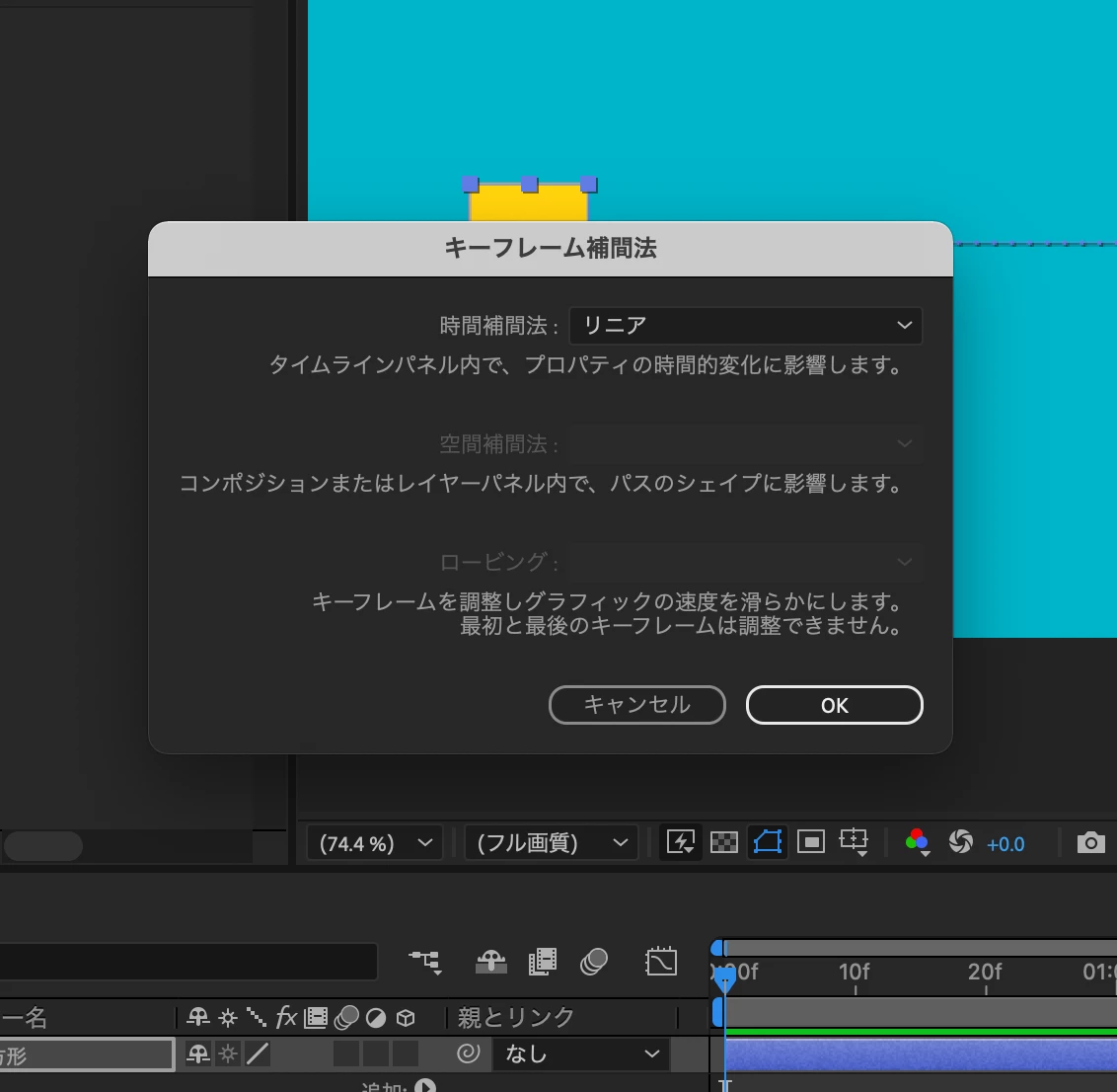 キーフレーム補間法にて空間補間法をベジェに変更したいのですが、選択できません
